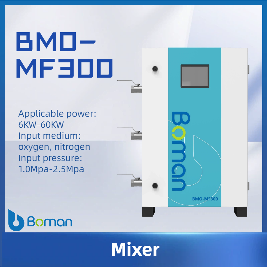 El mezclador de nitrógeno y oxígeno Boman BMO-MF300 es una herramienta eficiente de dosificación de gas en el campo del corte por láser. Es compatible con dispositivos de potencia que van desde 6KW a 60KW y puede mezclar con precisión oxígeno y nitrógeno en una proporción del 80% al 99,99% con un error de solo ±1,0%, cumpliendo con los requisitos de gas de diferentes escenarios de corte.