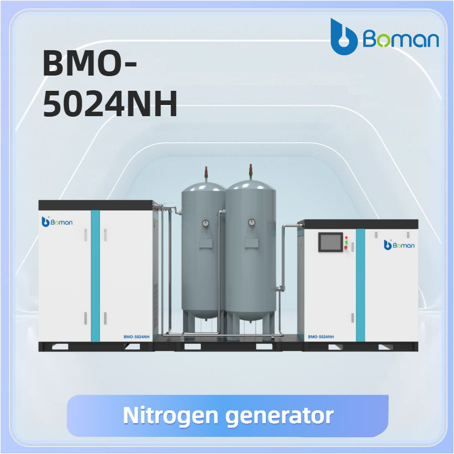 La BMO-5024NH es una máquina suplementaria de generación de nitrógeno y soplado de gas especialmente diseñada para equipos láser con una potencia de 40.000 vatios o menos. Toda la máquina tiene una potencia de 40KW y es compatible con fuente de alimentación trifásica de cinco hilos de 380V. La capacidad de producción de gas es de hasta 130 m³/h, con una pureza que oscila entre el 85 % y el 99 % y se puede ajustar de forma flexible. Cumple perfectamente con los requisitos de gas del corte por láser.