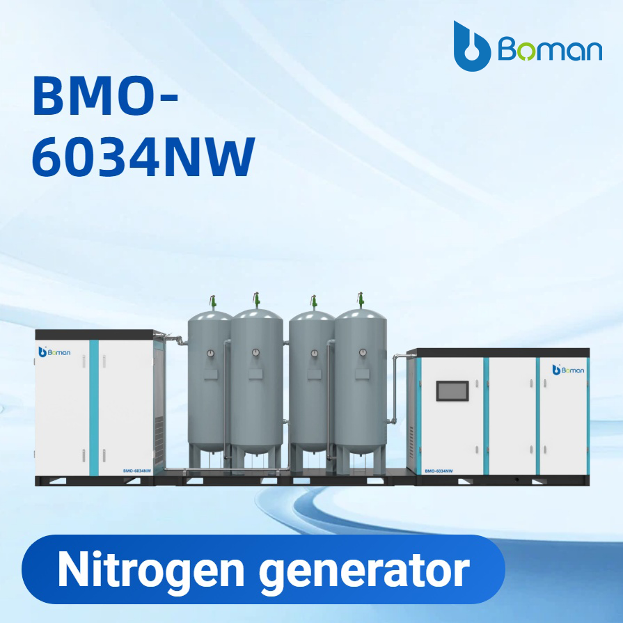 BMO-6034NW es un generador de nitrógeno lubricado con agua y sin aceite que es compatible con múltiples equipos láser. Con una potencia de 60KW, puede producir 180Nm³/h de gas. La pureza se puede ajustar del 85% al 99%. La presión de trabajo es de 2,0 MPa. Ofrece un nivel de limpieza "totalmente libre de aceite y polvo", lo que lo hace adecuado para escenarios de corte coordinado con varias máquinas de alta demanda.